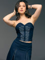 Design: Sweetheart neckline corset top with contrast zig-zag stitch detailing and pearls